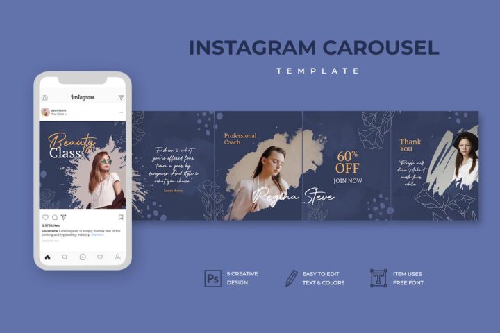 This product contains 5 fully editable and customizable Instagram Template. Every story is professionally designed: they are fully customizable and compatible with Adobe Photoshop. With these Instagram posts, you can easily upgrade your Instagram in a stylish and professional way!