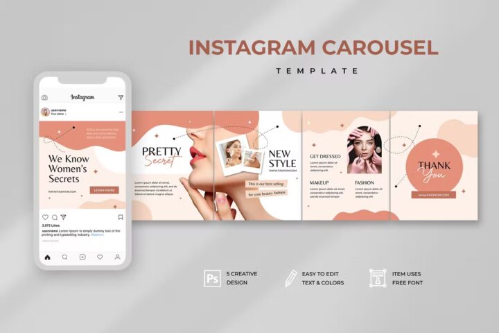 Welcome to professional, clean, modern, and elegant posts for Instagram Carousel. Boards of inspiration, portraits, Shopping Lovers, and much more in one set! amazing posts for your promotion!