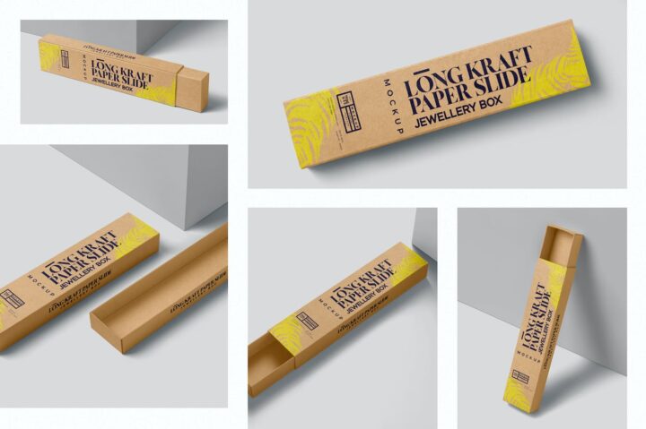 Present your packaging and branding designs realistically on a long drawer box using these long rectangle drawer box mockups. These mockups have smart object option & well-named layers for customization needs. Just open these PSD files in Photoshop and using these tools you can easily adjust the design, light effects, shadows and background.