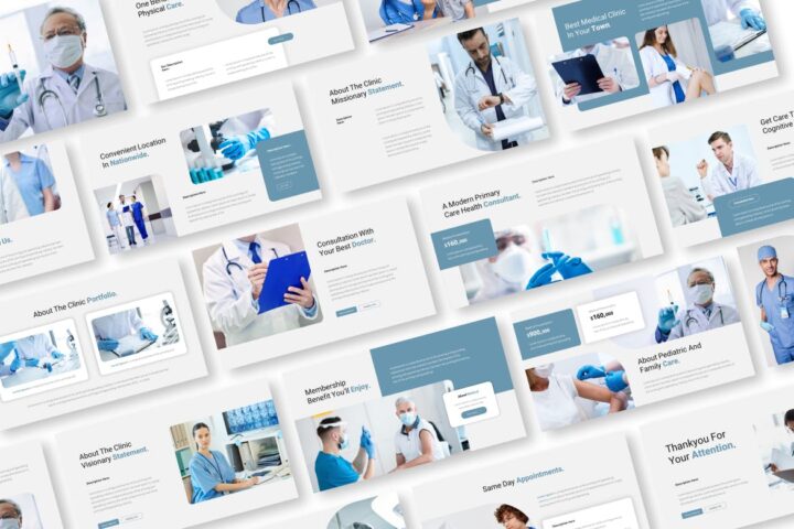 Medical Clinic Powerpoint Presentation Template is a Medical Clinic guideline and manual book for company presentations. With simple, clean, and professional design concepts. for high-quality brand manual book presentation template.