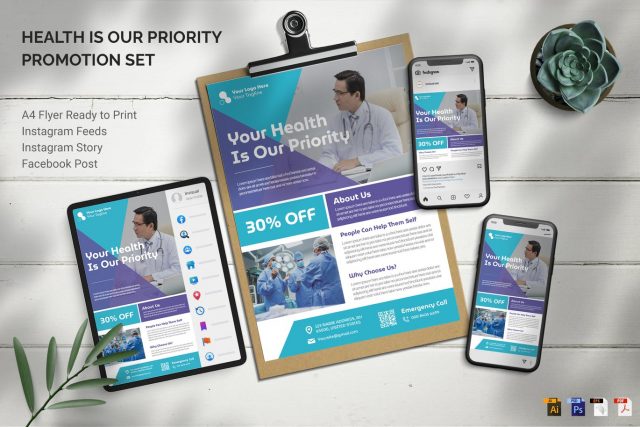 Medical – Promotion Set is promotion template set for all business or personal needs. And because everything has goes to digital, we’re not only provide you with the print size, but also with digital size for Instagram Post, Instagram Story, Facebook Ads. You also can use it for another Social Media platform. Download it, use it, and you ready to impress your audience!