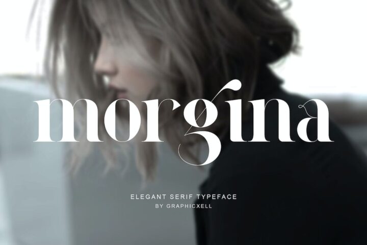 Morgina Serif Font inspired by the famous minimalist logo perfect for the purposes of designing templates, brochures, videos, advertising branding, logos, invitation, layout design, elegant crafting, instagram template, fashion, film cover beauty design and more.