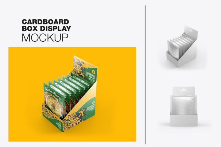 Metallic, Sachets, Display, Box, Mockup, Packaging, Product, Design, Branding, Advertising, Marketing, Pouches, Showcase, Food, Products,