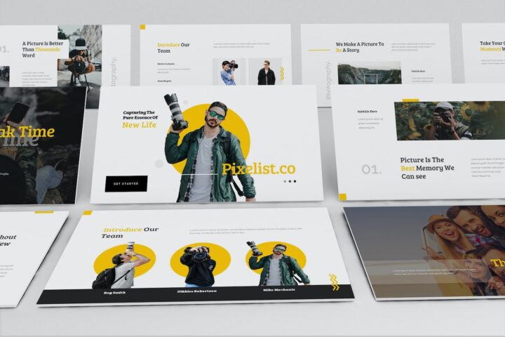 Pixelist – Photography Keynote Template is a creative photography presentation template, come with flat design, clean, minimalist, modern presentation, look beautiful on presenting your online portfolio. represent professionality and modern photography service.