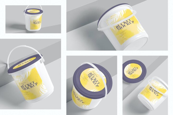 Use these plastic bucket mockups for presenting your plastic bucket packaging and branding designs. These mockups offer smart objects and well-named layers for all customizations. Just use Adobe Photoshop and produce unlimited presentations of your branding designs.