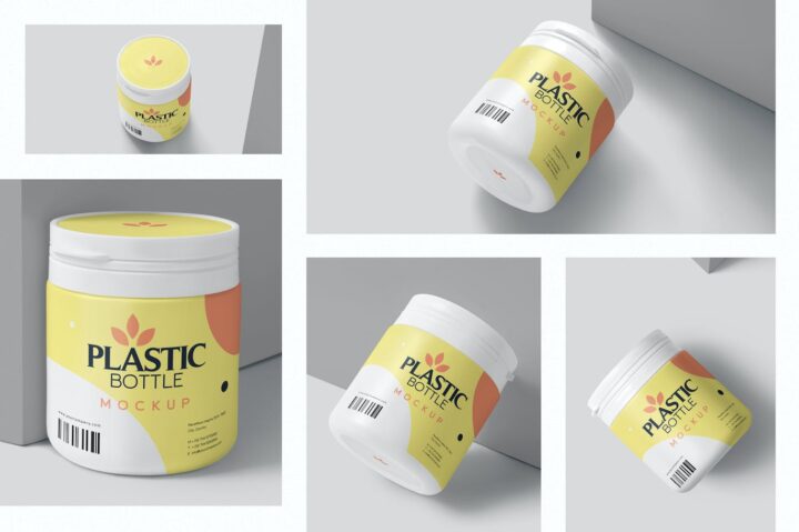 Plastic tablet bottle mockups that can be used to show off your medicine packaging bottles gracefully. Featuring smart object option to insert the pills and tablets packaging label designs on the bottle mockup. You can also customize the colors, light effects, shadows and background using their intelligent layers.