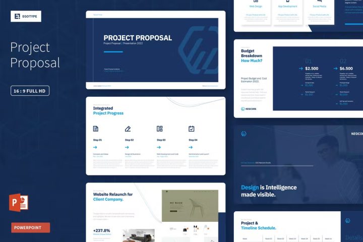 **Neocore Series – Project Proposal Powerpoint Template is a pitch deck presentation for companies, agencies, freelancers etc. Get a minimal, simple, clean, and professional design concept and prepare high-quality pitch deck presentation templates in minutes.