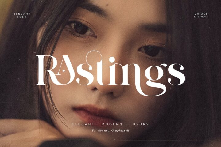 Rastings Ligature Serif Font inspired by the famous minimalist logo perfect for the purposes of designing templates, brochures, videos, advertising branding, logos, invitation, layout design, elegant crafting, beauty design and more.