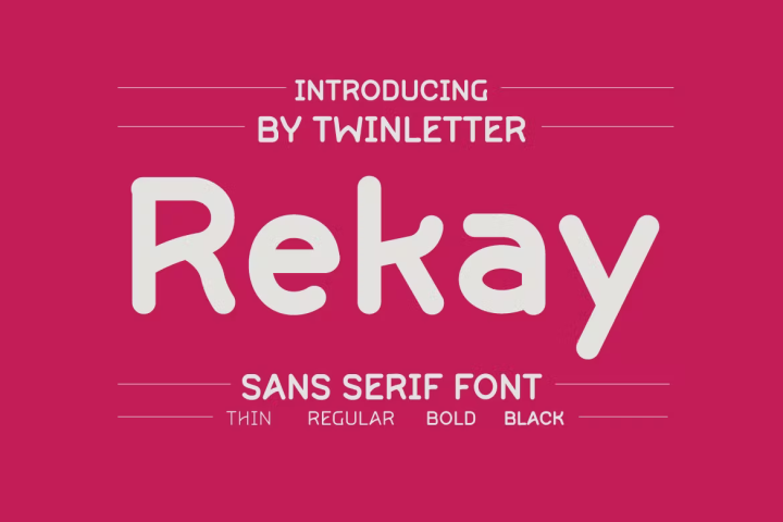 Rekay is a sanserif font with a clean and minimalistic look. This lovely font will give your project a delightful appearance; everyone who sees it will think of it as professional and sophisticated, thanks to its attractive appearance. With this typeface, you can make your project stand out.