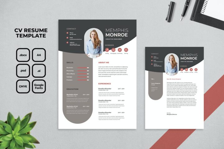 Professional CV and resume templates impress hiring managers at prestigious companies. These template files can be easily customized using Microsoft® Word on a Mac or PC. With just a few clicks, you can easily change the text, fonts, and colors to personalize your own content and color scheme. This template package not only with cv template but also includes with cover letter and portfolio page