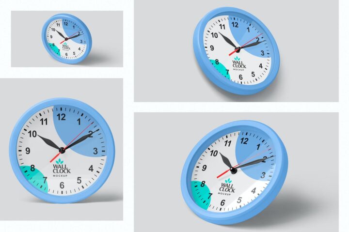 Fully editable round wall clock mockups that you can customize to portray your corporate identity and clock branding designs. You can change the color of the clock frame and inner skin of the clock with a few clicks. These mockups also allow you to customize the light effects, shadows and background using well-named layers.