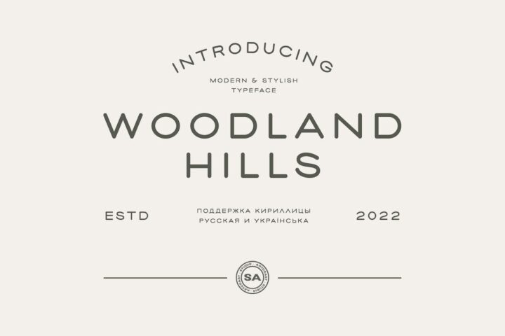 Introducing SA Woodland Hills – a clean, elegant, modern typeface that you can use in packaging or branding, creating beautiful logos, headlines, quotes and any other printed matter. The font supports Russian and Ukrainian Cyrillic, as well as extended Latin. We hope that the font will become your excellent assistant in the design of products.