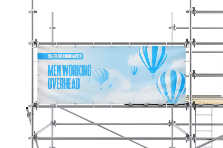 Mockup, Branding ,Scaffolding, Advertising, Outdoor, Banner, Information ,Marketing, Roadside ,Vinyl, Grommet, Frame ,Construction ,gfx