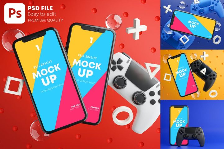 Smartphone Gaming Mockup Gamepad Pack