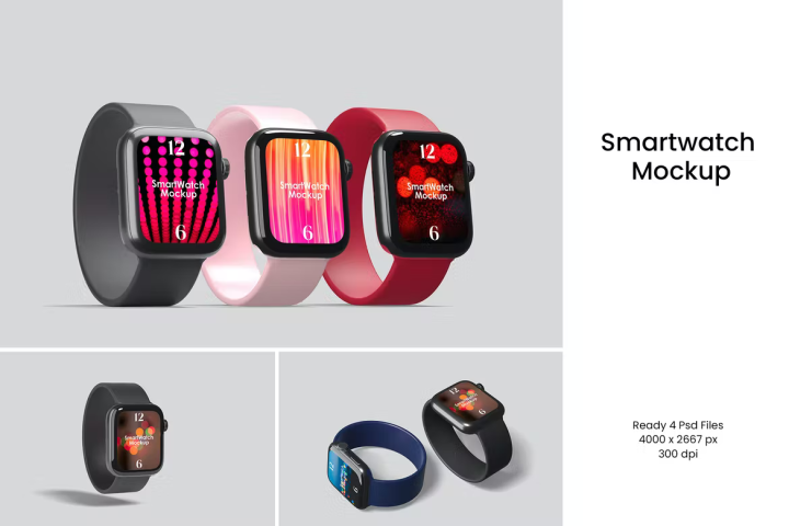 We Present Smartwatch Mockups for showcasing your design in realistic look. This is Photoshop file, layered, and editable design in smart object feature. it’s easy to edit and save the time. Just by double click on the layer thumbnail of smart object, its will open to new document, then paste your design inside and save.