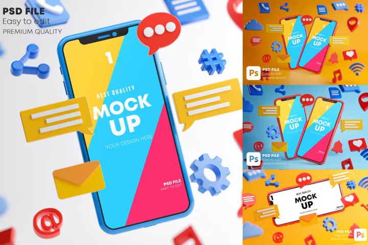 Social, Media, Mockup ,Icon, App ,3d, Cartoon ,Fun, Colorful, Internet, Interface, Concept, Iphone ,Symbol ,Digital, gfx