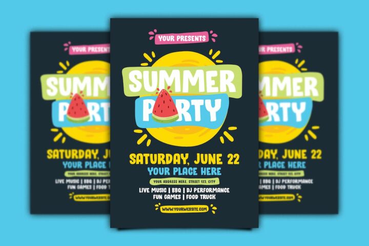 Summer, Summer party, Party, Celebration, Flyer, Poster, Event, Season, Fresh, Fruit, Beach, Sun,