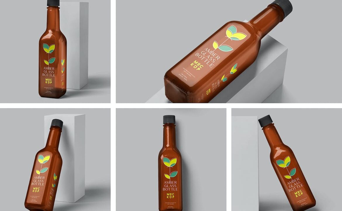 Amber Glass Syrup Bottle Mockups