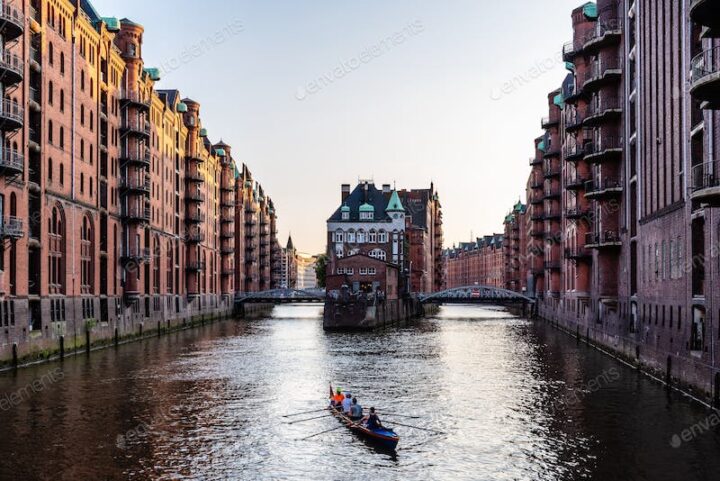Sunset over ocean behind a picturesque seaside town in Rovinj Croatia
