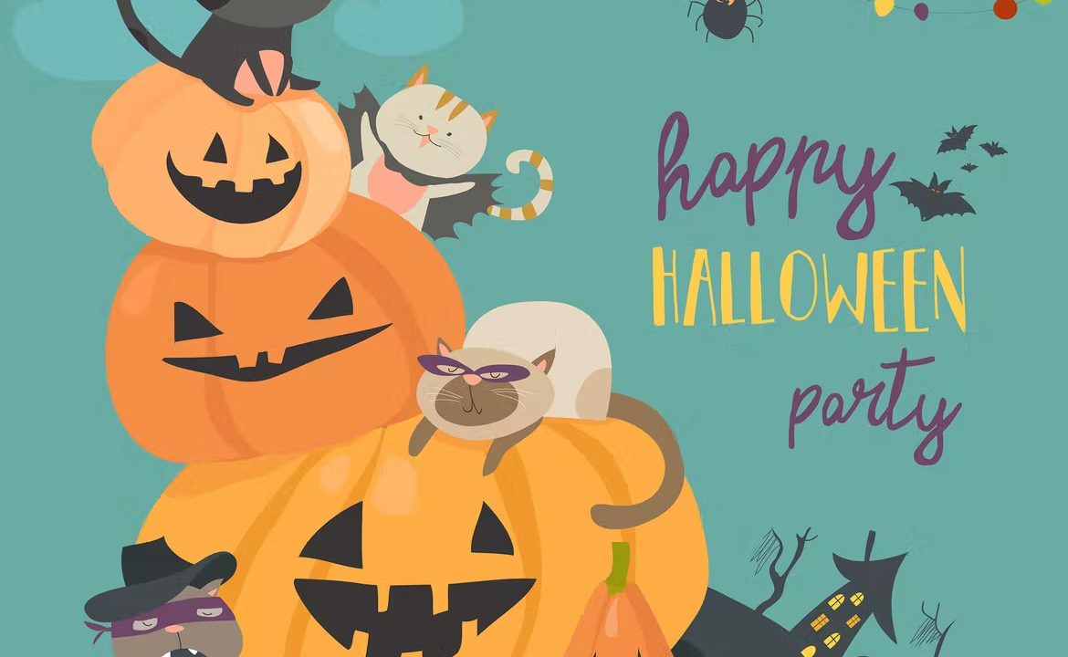 Happy halloween with pumpkin and cute cats