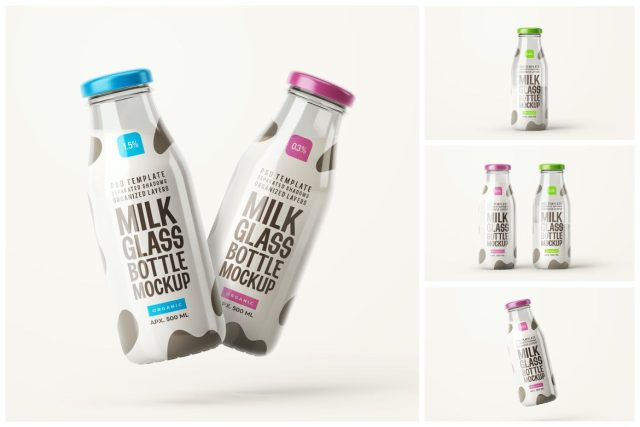 250 ml Glossy Milk Bottle Mockup Set