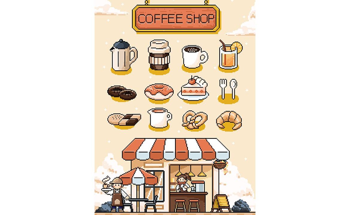 Cafe and Food Elements in Pixel Art