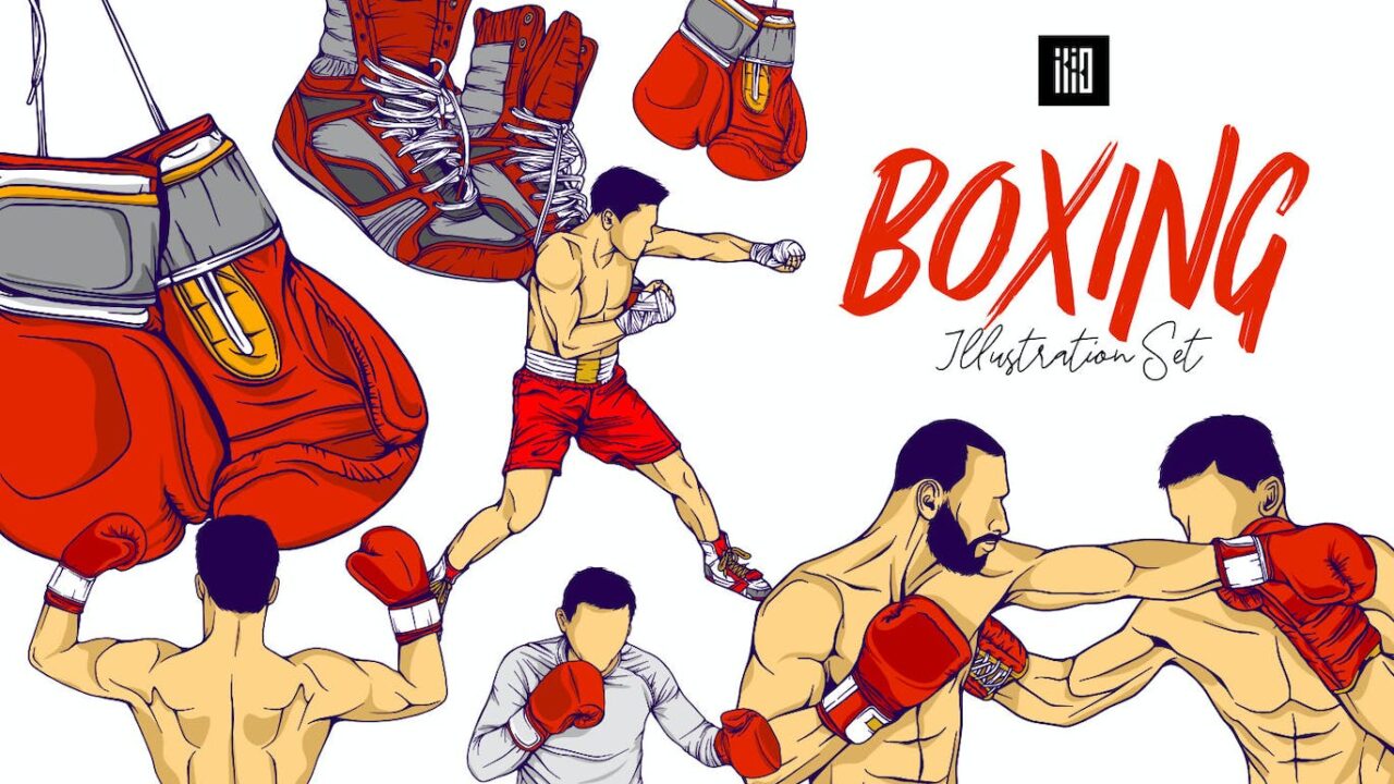 Boxing Illustration Set Line Art