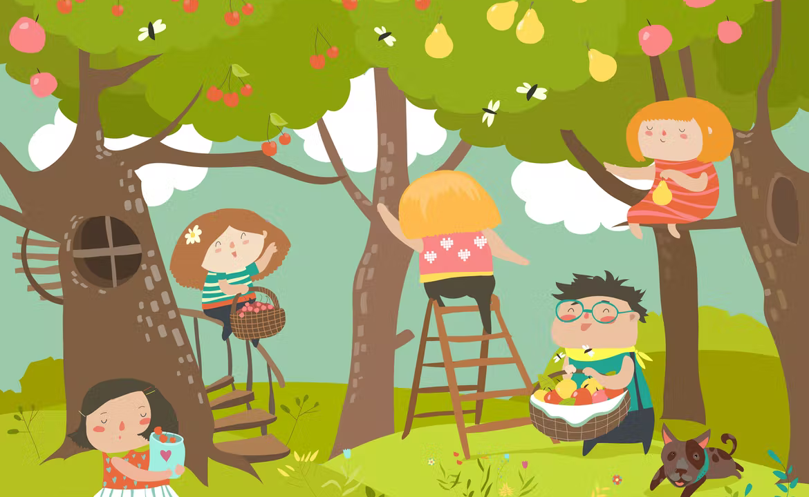 Happy children harvesting Happy summer Vector