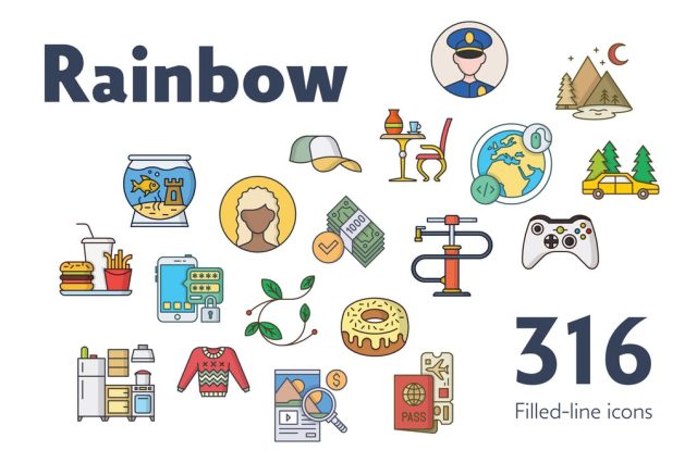 Rainbow 316 Filled Line Icons Bundle