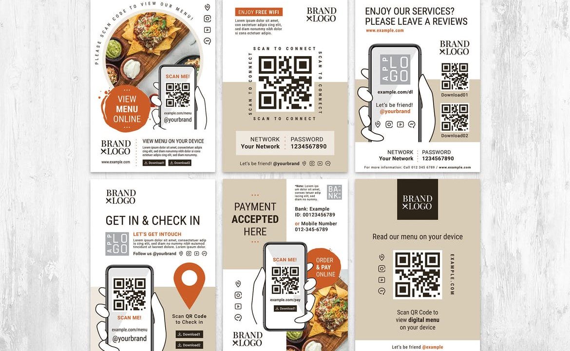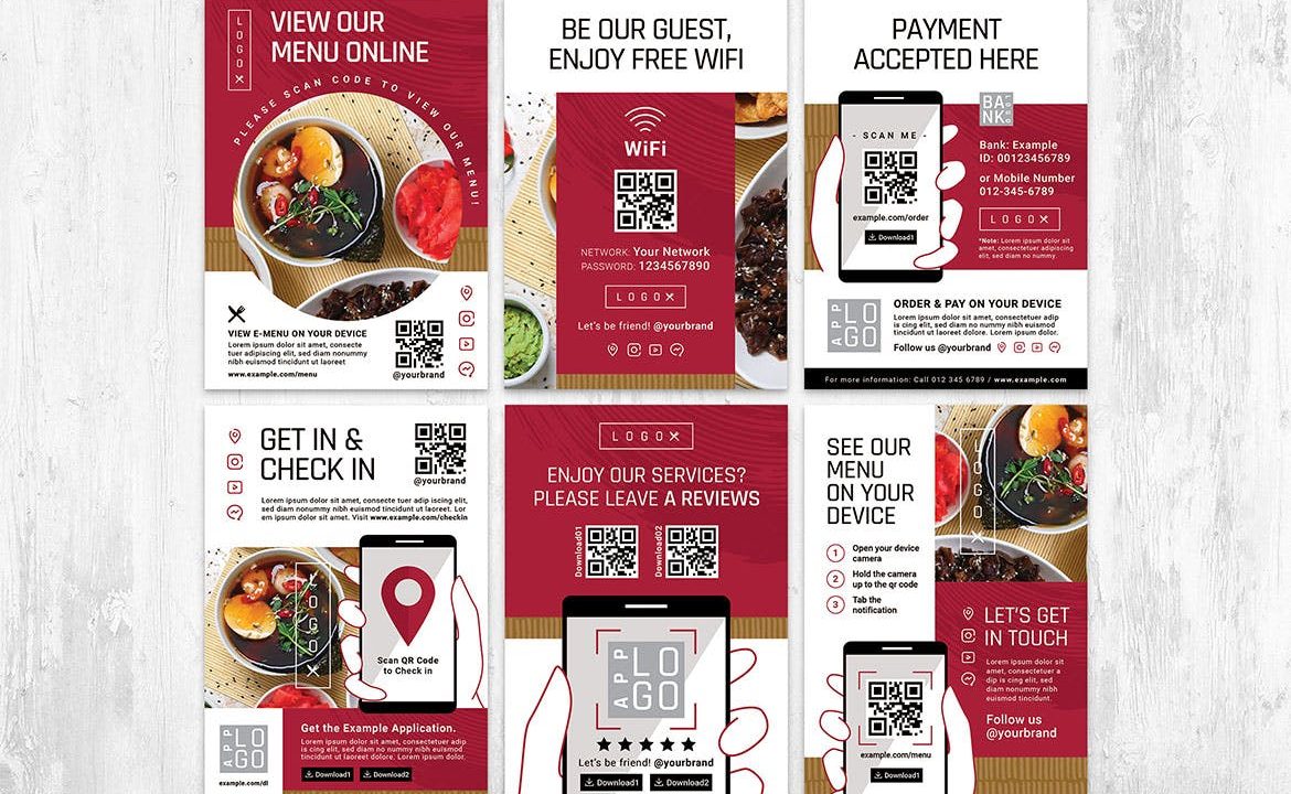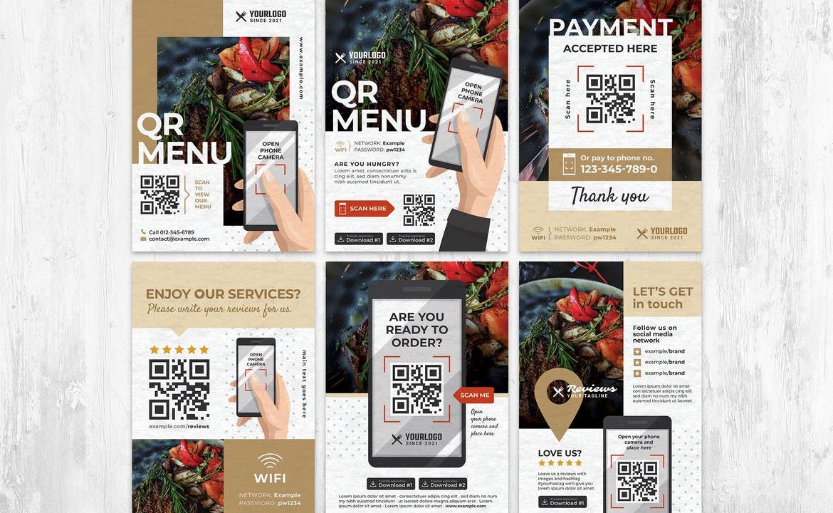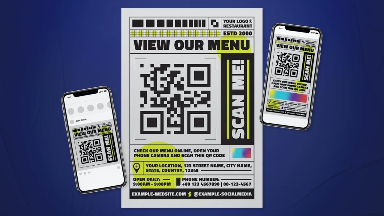 QR Code Online Menu Flyer Set