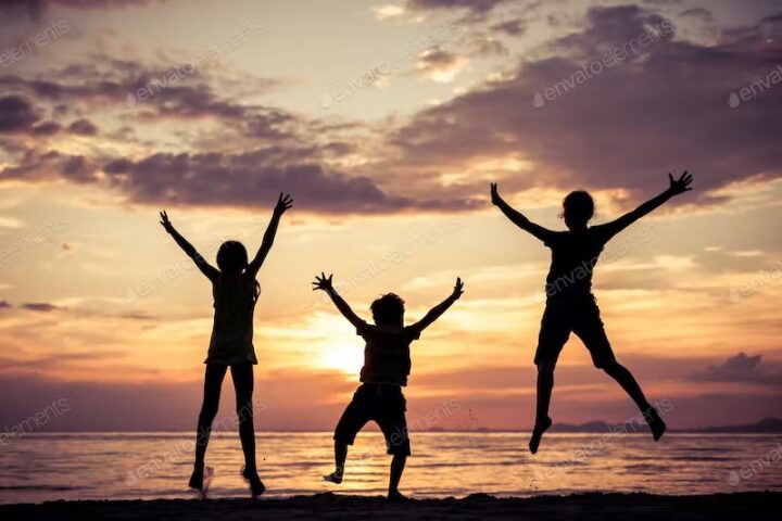 happy children playing on the beach