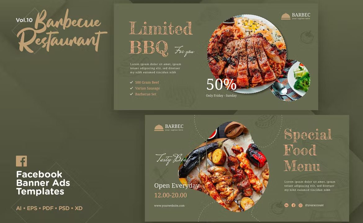 Facebook Ads Banner Vol 10 Barbecue Restaurant