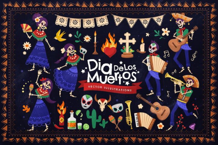 Mexican Dia De Los Muertos Vector Illustrations