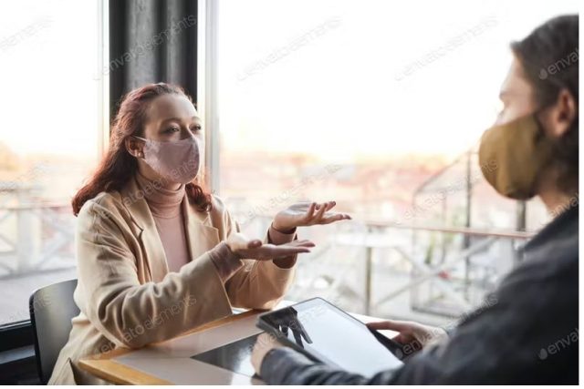 Covid vaccination. Young woman with band aid after coronavirus vaccine injection gesturing okay over