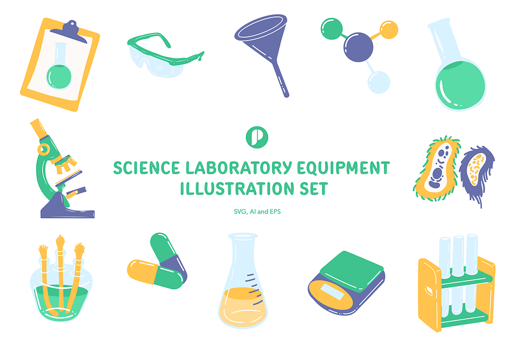 Fun science laboratory equipment illustration set
