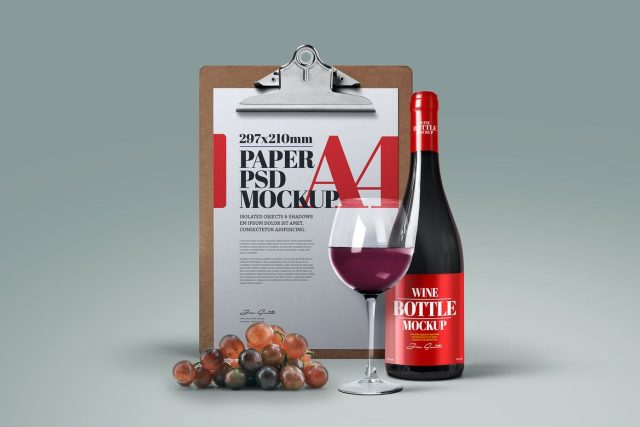 Bottle Wine Red A4 Clipboard Scene Mockup