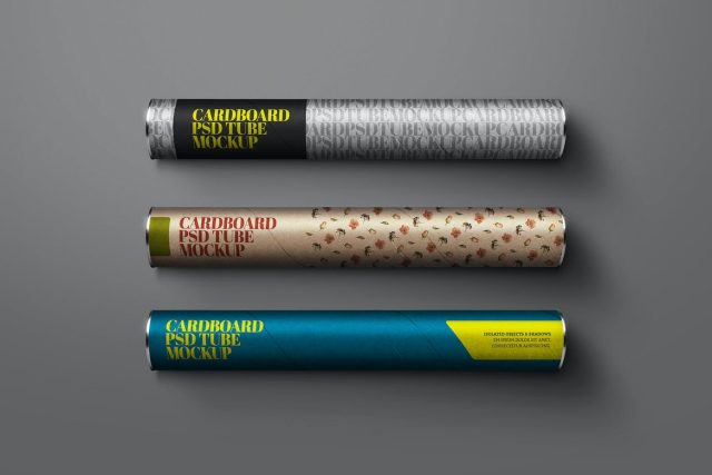 Cardboard Mailing Tube Metal Chrome Cap Mockup