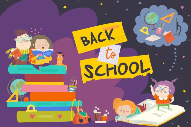 Set of cute owls with books. Back to school