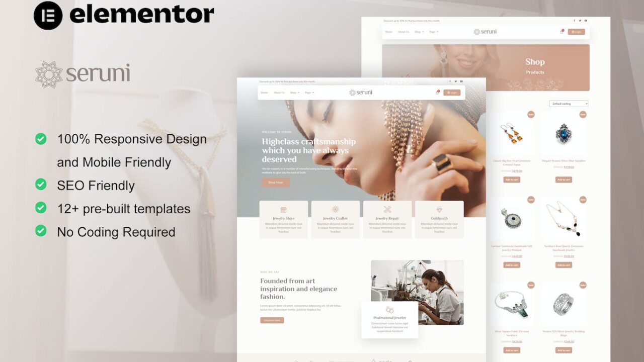 Seruni – Jewelry Store WooCommerce Elementor Pro Template Kit