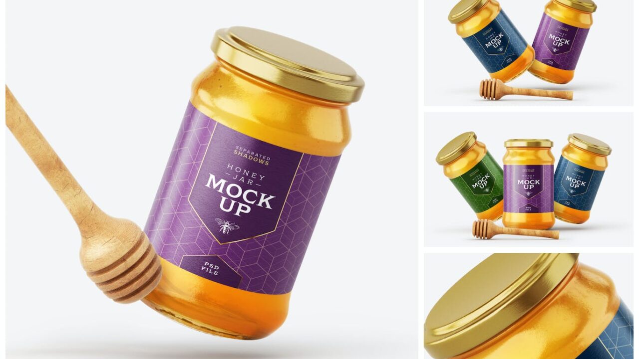 Honey Jar Mockup Set With Dipper