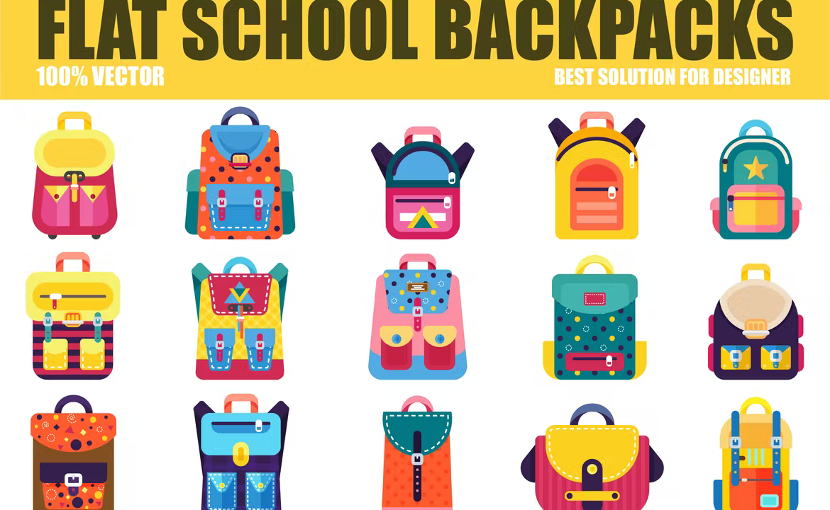 Flat School Backpacks Vector