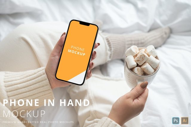 iPhone 13 Pro Max in Hand Christmas Cozy Mockup