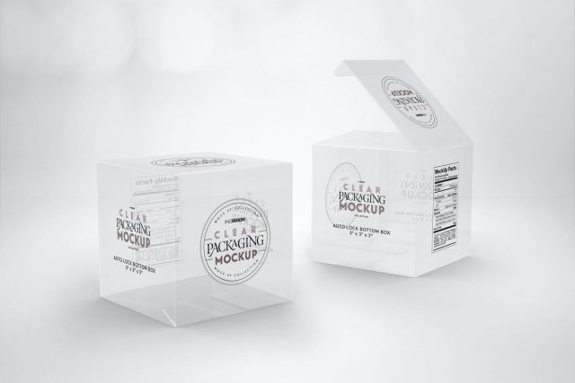 Clear Lock Bottom Boxes Packaging Mockup