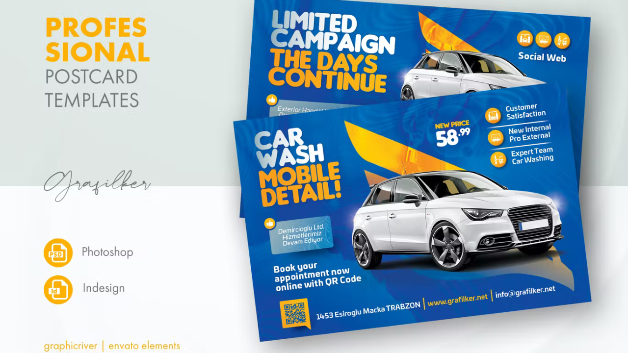 Car Wash Postcard Templates
