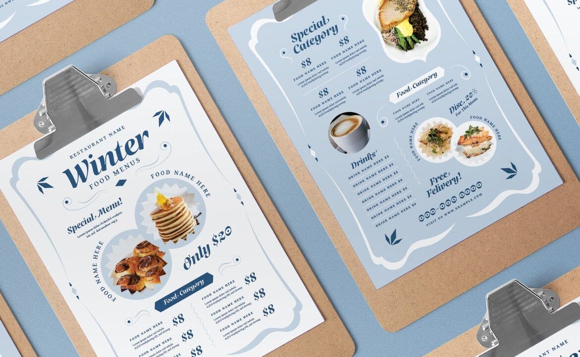 Blue Modern Vintage Winter Food Menu