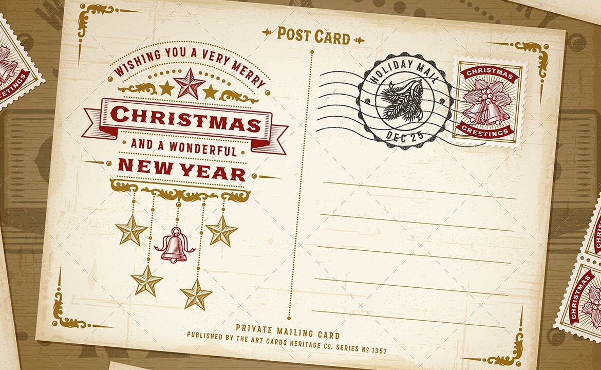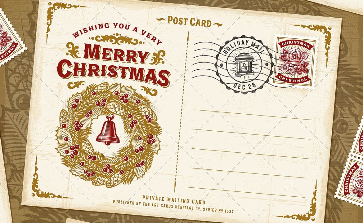 Vintage Christmas Typography Postcard
