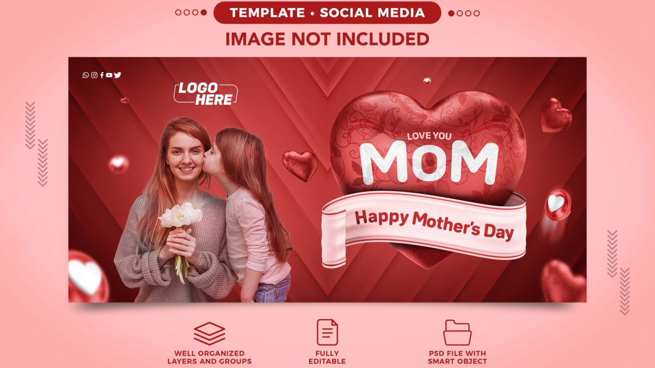 happy mothers day facebook social media template heart composition