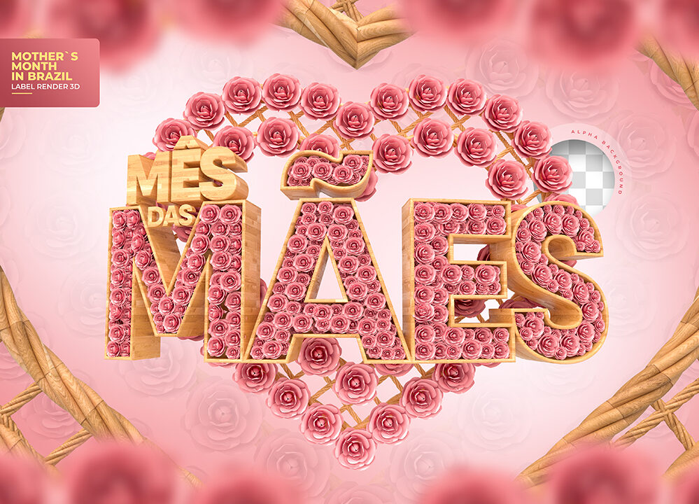 label mothers month brazil wit pink flowers strings 3d render