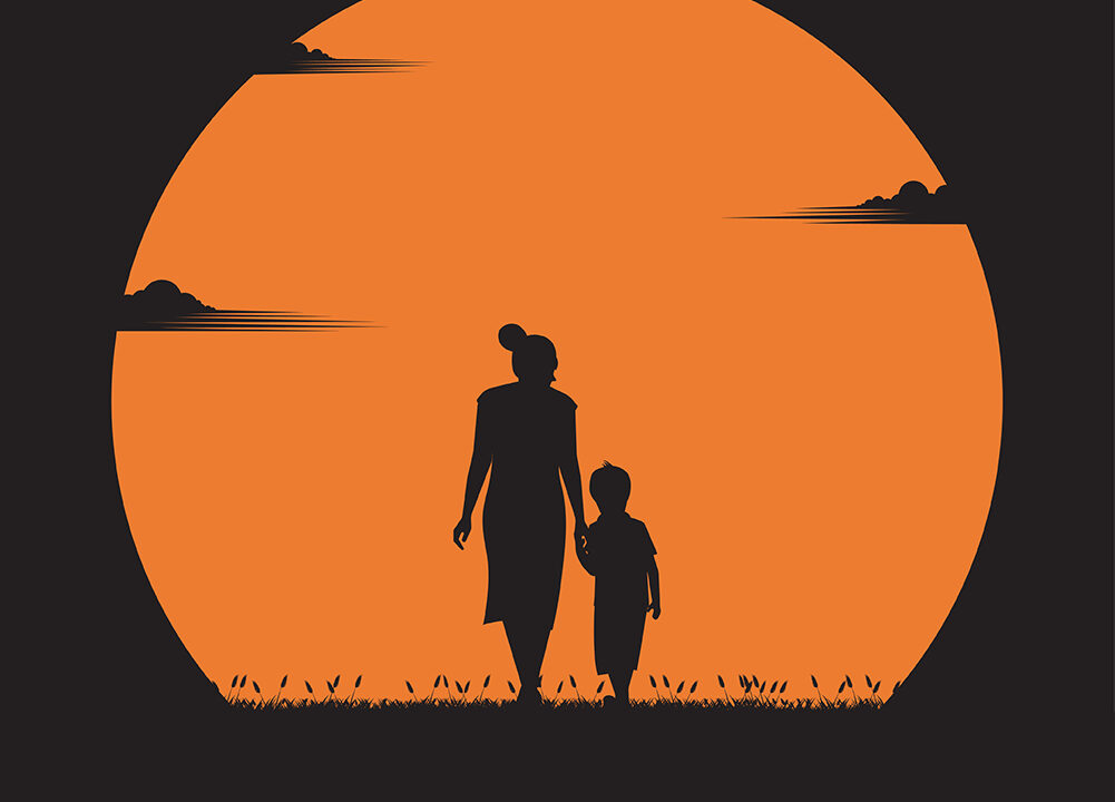 mother day concept mother walked hand with her son sunset
