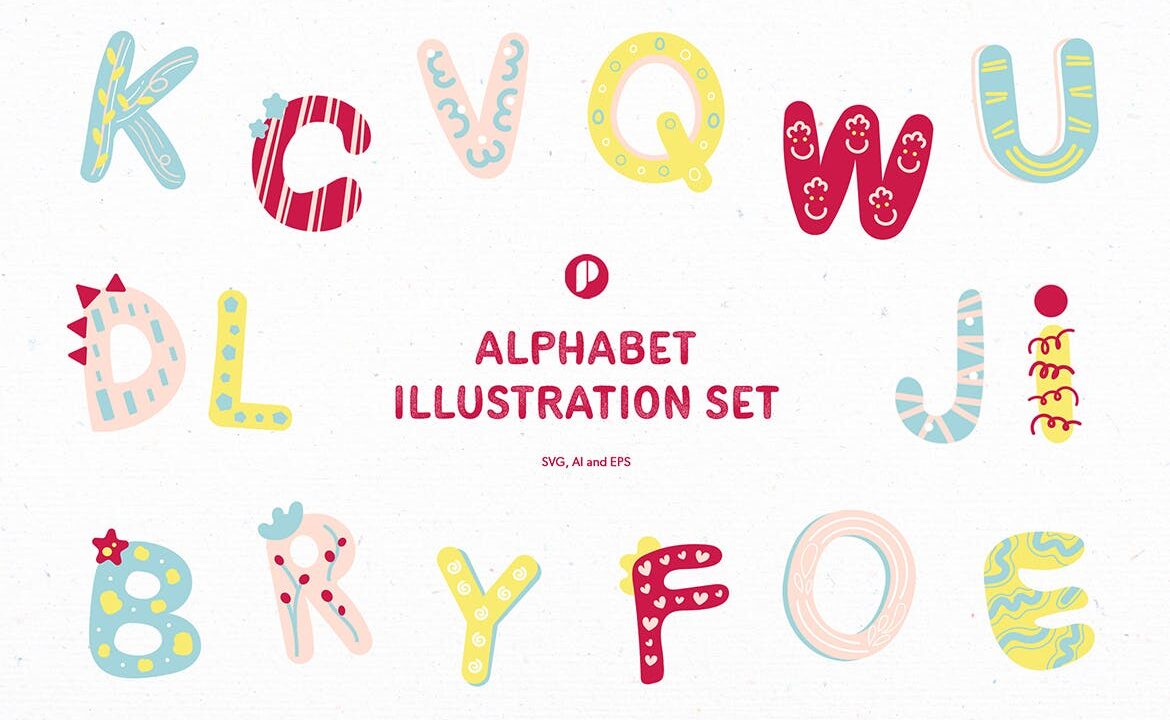 Fun learning alphabet illustration set